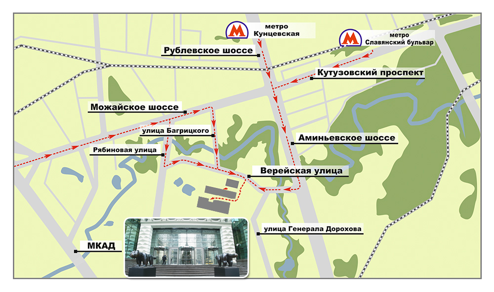 Станция метро «Славянский бульвар» выбирайте последний вагон, выход к Кутузовскому проспекту. От метро "Славянский бульвар" вы можете добраться на автобусе № 103. (до конечной остановки "Улица Дорохова") или 622 (до остановки "Аминьево")