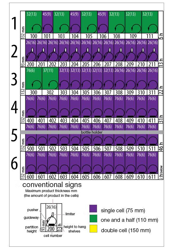 You can set up your configuration of trays and cells that fits your requirements. ROSSOBAR TOUCH is very flexible. If required you can change standart configuration when ordering the machine or you can order additional spyrals and deviders and change the planogram by yourself.