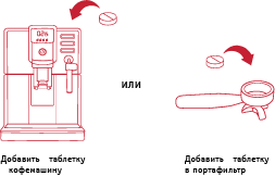 Таблетки предназначены для очистки от накипи и загрязнений элементов рабочей группы профессиональных и бытовых кофемашин, в том числе суперавтоматов. Таблетки изготовлены на основе перкарбоната натрия, триполифосфата натрия, поверхностно-активных веществ, и добавок обеспечивающих высокий эксплуатационный эффект.