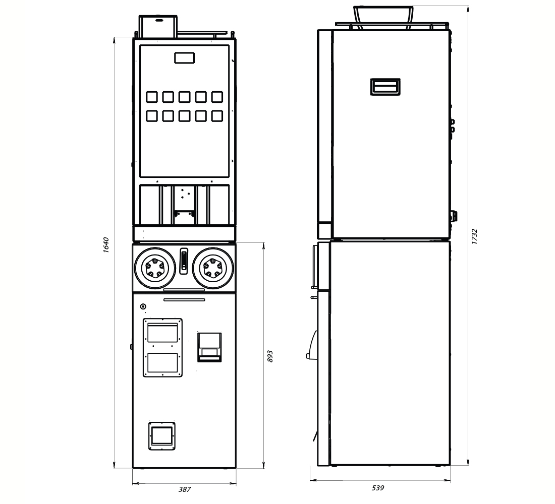 Габариты нетто автомата (в x ш x г) 1730 x 387 x 539 мм