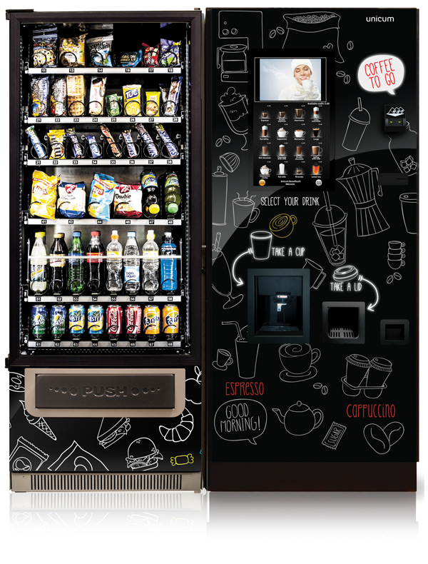 Предлагаем вашему вниманию комбинированный автомат Rosso Touch ToGo Bar и Rosso Touch ToGo Bar LONG. Автомат позволяет продавать 32 наименования горячих напитков (натуральный зерновой кофе) в больших бумажных стаканах 330 мл. с пластиковой крышкой, а также продукты питания, снеки, прохладительные напитки.