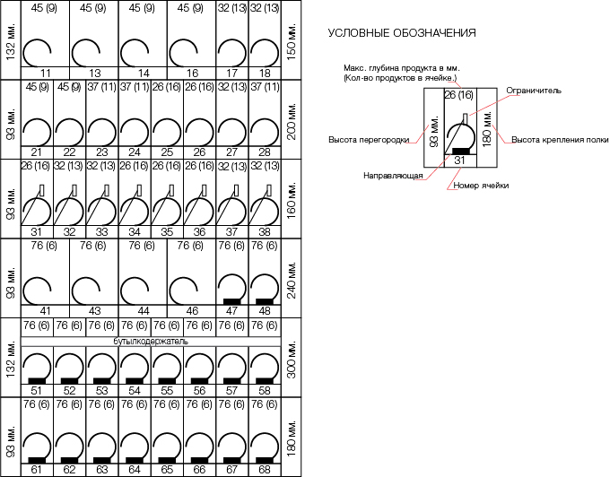 - До 8 настраиваемых по ширине ячеек на полке.